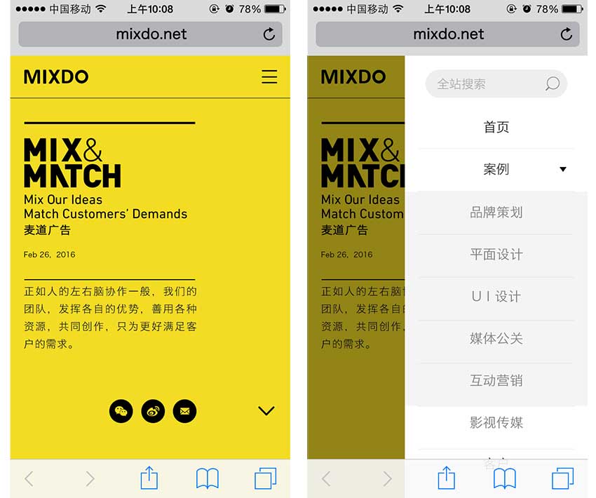 2016年再次为麦道传媒股份有限公司(原麦道广告)提供第三次网站改版服务,由于公司和业务发展壮大,除了网站平面设计、栏目和内容做了调整,并支持搜索引擎优化(SEO)外,网站开发技术也与时俱进,由旧版网站只支持电脑访问改为响应式网站设计,支持手机端访问。